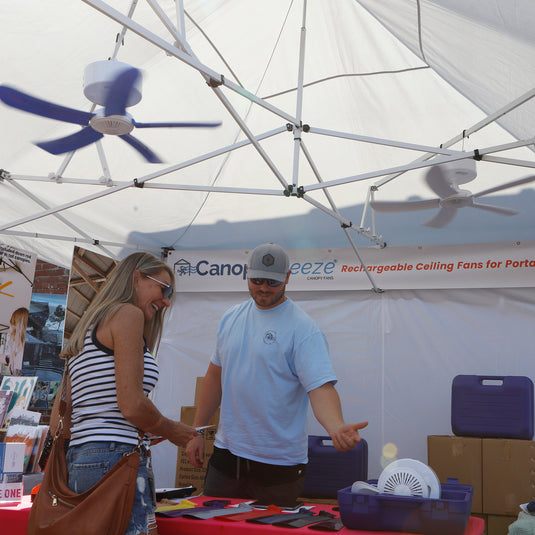 We participate in Farmers markets in Ohio from May-September and it's been brutally hot here lately. We ordered the canopy fan for some relief and it has been amazing. We aren't dropping with sweat at our events and it helps it products stay cool. I highly recommend